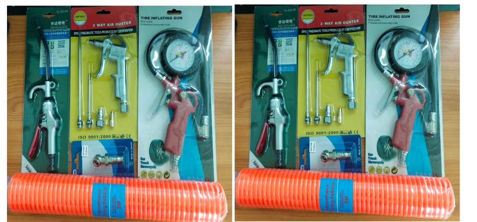 ปืนฉีดลม 5 ตัว/ชุด+สายลมสปริง 9 เมตร + หัวเติมลม+เกจ์วัดลม+ปืนเป่าลมเหล็ก
